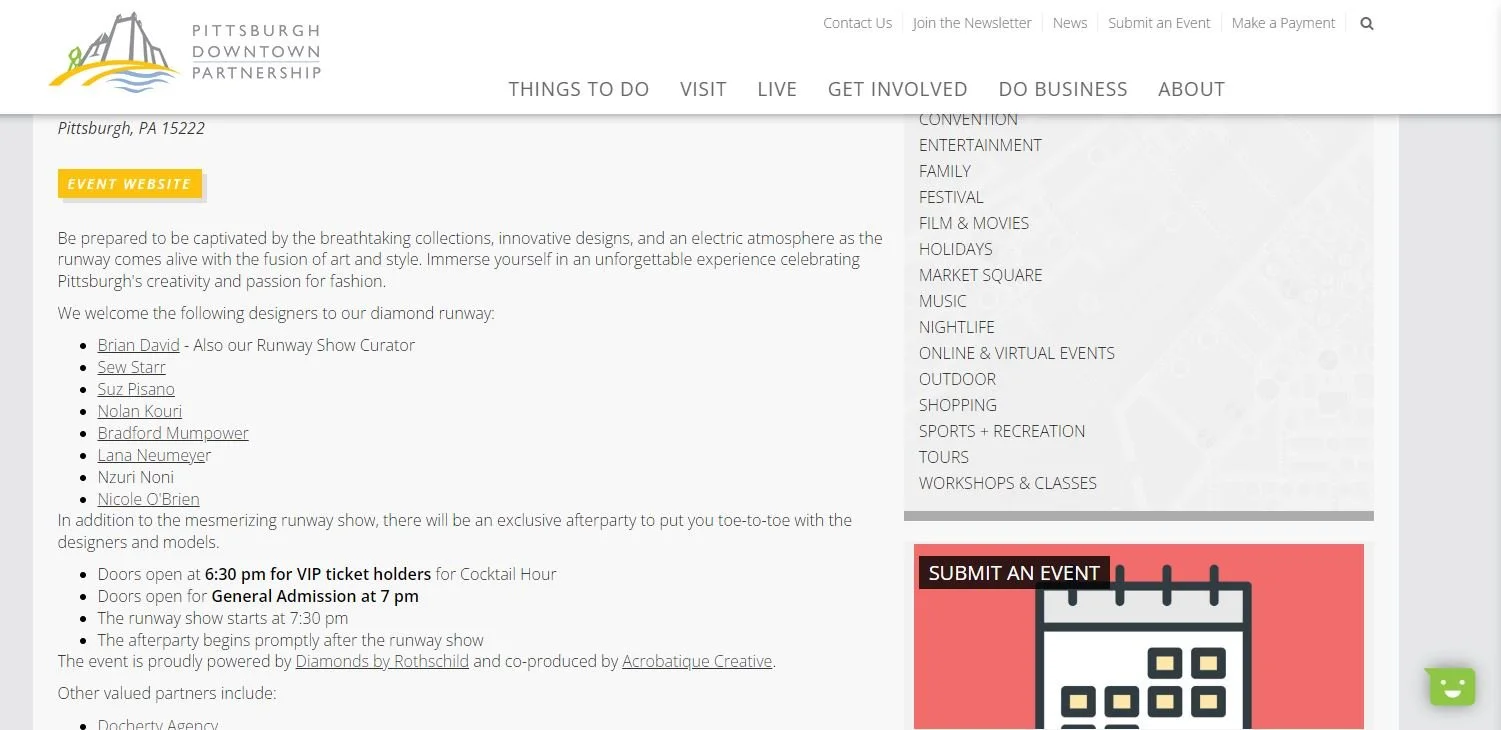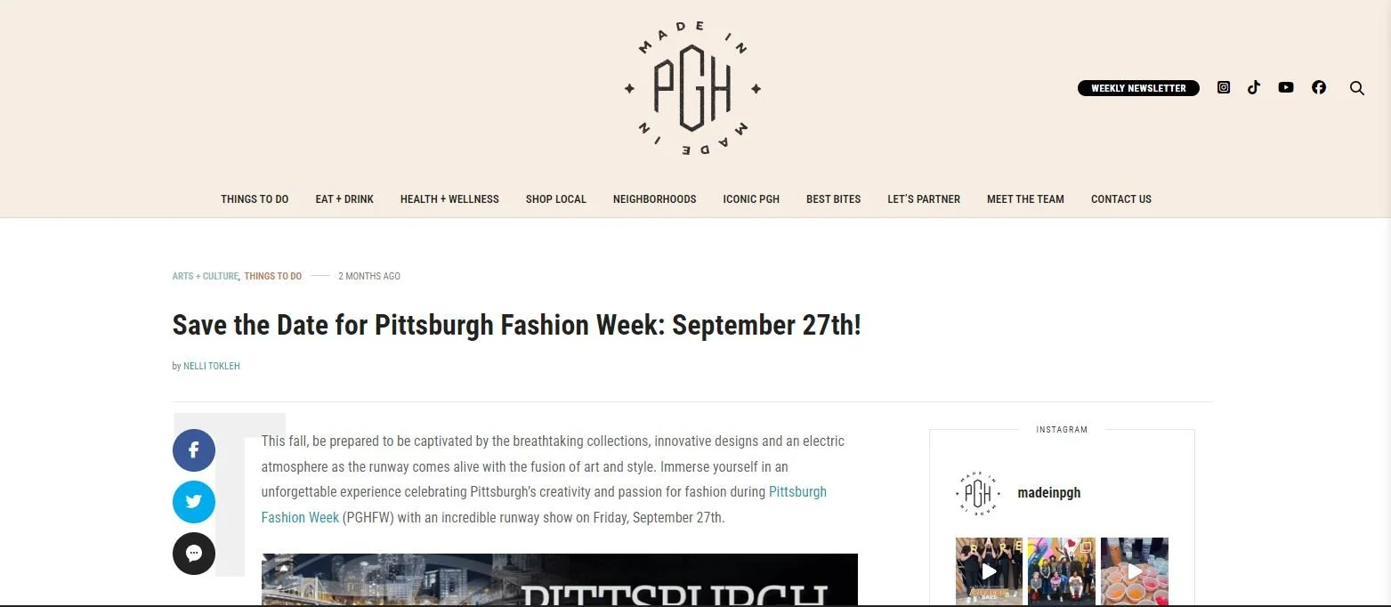 PGHFW 2024In the Press CBS News Pittsburgh Siti Girl Pittsburgh Whirl Magazine Entertainment Central Pittsburgh Pittsburgh Downtown Partnership Made in PGH The Peel Project Inspiring Lives Magazine KDKA Radio on Demand Next Pittsburgh